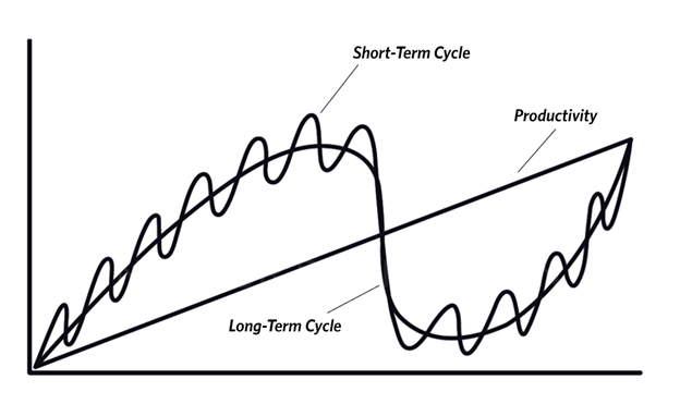 What most people call the “economy” is really an interaction between credit, spending, and productivity. This interaction follows the rhythm of two key cycles: